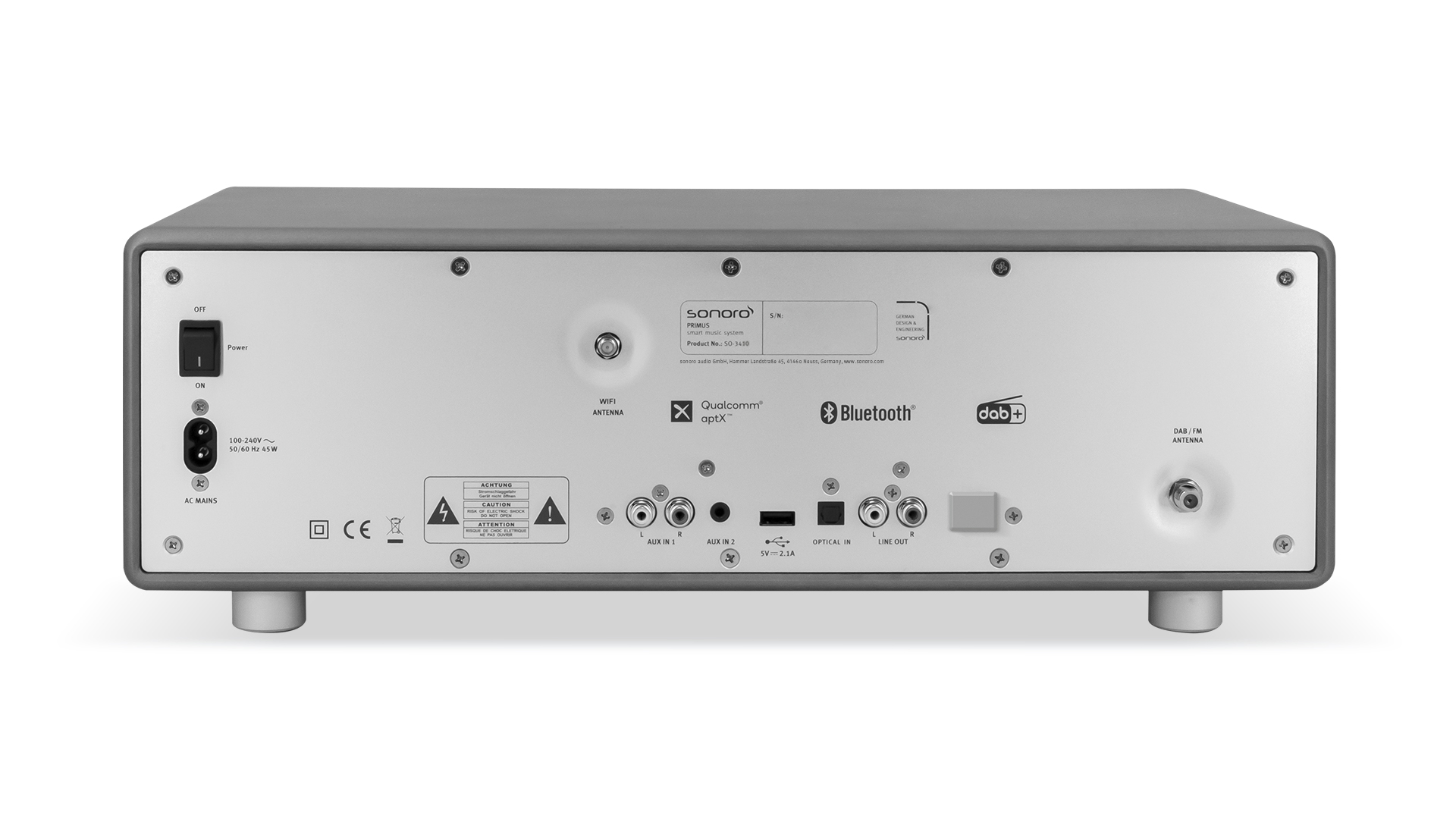 Das PRIMUS Audio-System überzeugt nicht nur durch Klangqualität, sondern auch durch sein reduziertes Design. Typisch sonoro eben. Front und Bedienknöpfen aus Vollmetall, das hochwertige, mit Lack veredelte Holzgehäuse sowie das automatisch dimmbare Display strahlen Wertigkeit aus. Mit seinen schlanken Abmessungen und dem minimalistischen Design passt PRIMUS zu vielen Einrichtungsstilen und lässt ihn überall gut aussehen. Qualität, die man nicht nur hört, sondern auch sieht.