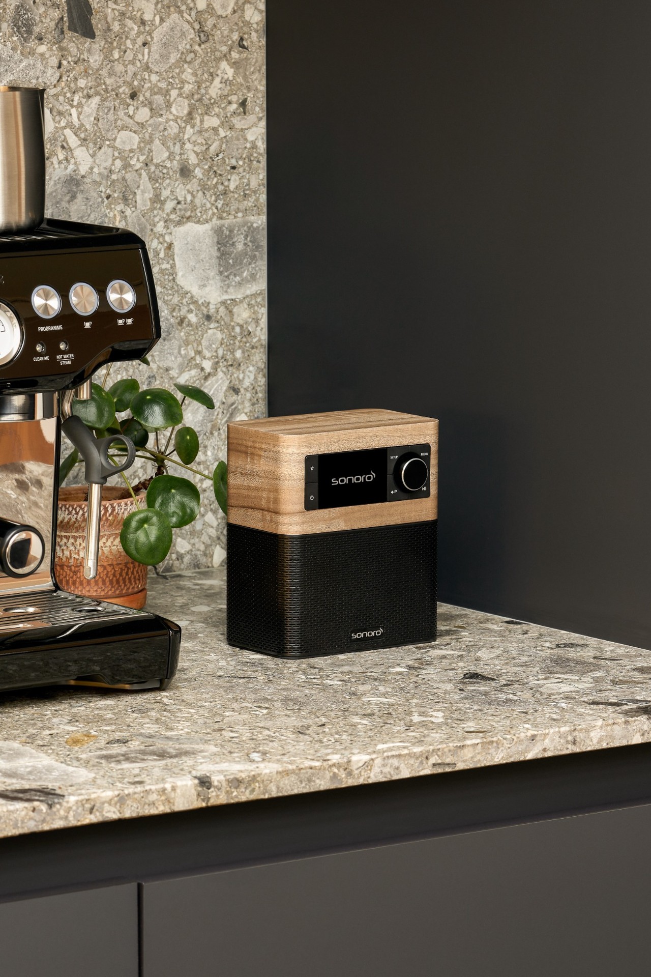 Das STREAM wird dank seiner kompakten Größe im Badregal, auf der Küchenarbeitsfläche oder dem Sideboard zum Blickfang – für Musikgenuss im ganzen Haus. Bonus: Über den USB-Port mit Ladefunktion tanken Sie Ihr Smartphone oder Tablet jederzeit auf, auch wenn gerade keine Steckdose frei ist. Bedienen lässt sich das STREAM ganz unkompliziert direkt am Gerät, per Fernbedienung oder via Smartphone mit der OKTIV-App*.